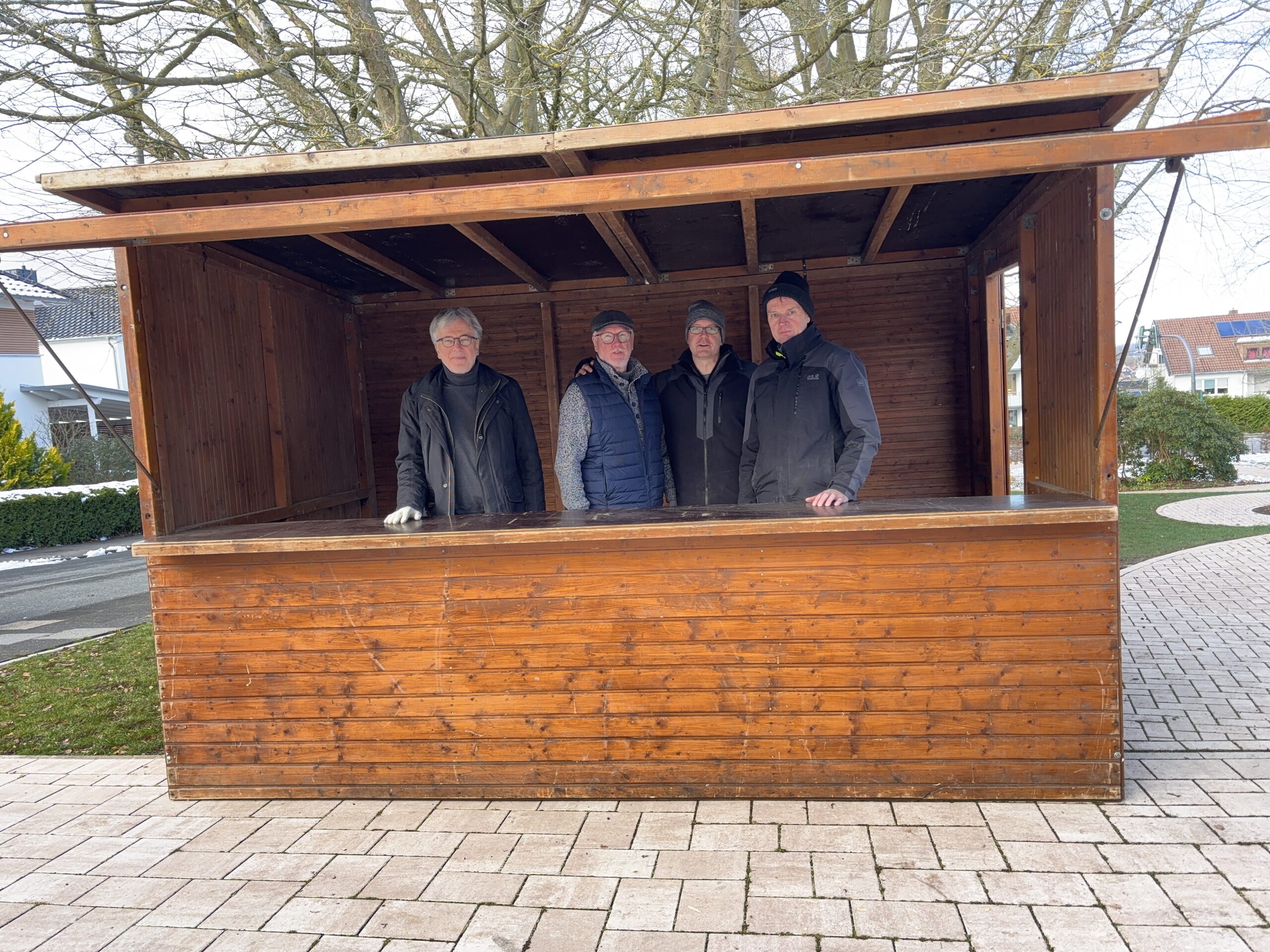 Heute war es endlich soweit: Die erste Weihnachtshütte für unseren Weihnachtsmarkt ist aufgebaut!Die Planungen laufen seit Wochen auf Hochtouren, alle Vorbereitungssitzungen sind abgeschlossen – und jetzt wird es sichtbar: Der 29.11. rückt immer näher, und wir freuen uns riesig! Dank Katja Meyer zu Hücker, die uns wie schon im letzten Jahr ihren großen Anhänger geliehen hat, konnten wir heute