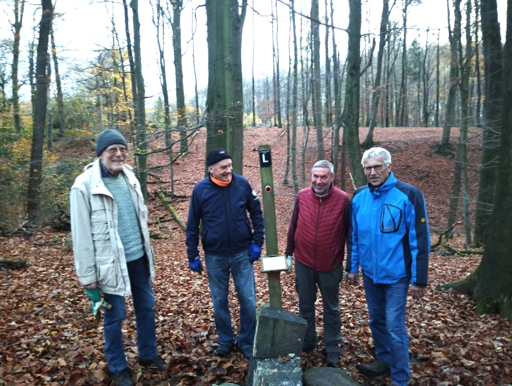Neues vom Erlebnispfad Unsere Naturschutzgruppe war wieder aktiv. Der Waldlehr- und Erlebnispfad brauchte ein wenig ‚Zuspruch‘. Im Herbst fallen im Leistruper Wald mächtig die Blätter, und wer auf dem Erlebnispfad unterwegs ist, findet die Aktivitätsstationen stark ‚belaubt‘ vor. Also war Ausrücken und Laub harken angesagt, besonders bei der Weitsprunganlage, die ja sehr beliebt ist. Jetzt