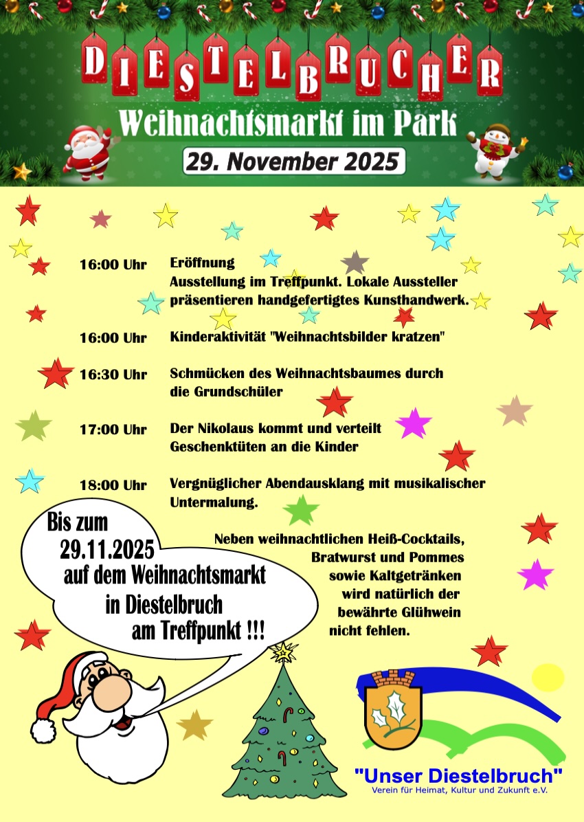 Was für ein Fest! Der Weihnachtsmarkt 2025 in Diestelbruch war ein echtes Highlight und ein wunderbares Zeichen dafür, warum wir als Verein tun, was wir tun: Menschen zusammenbringen, Gemeinschaft leben und unser Dorf liebens- und lebenswert gestalten. Ein Fest, das begeisterte Über 500 Besucher fanden am Samstag den Weg zu unserem Weihnachtsmarkt – und schnell war spürbar: Es war mehr als