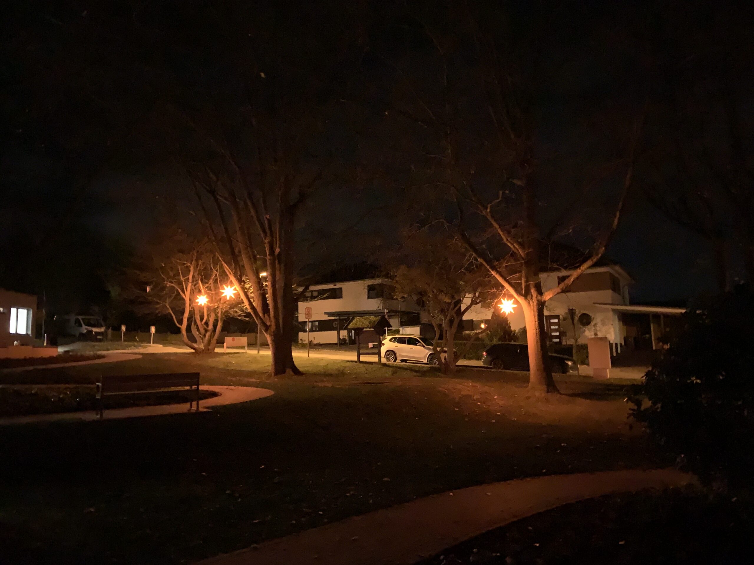 Heute war Bastelstunde im Park vor dem Treffpunkt – die Herrnhuter Sterne sind zurück!Im kleinen, eingespielten Team wurden die Sterne repariert – eine wirklich knifflige Arbeit. Gut, dass wir Alex, Anja und Petra dabei hatten. Besonders Alex mit seinen feinfühligen Fingern konnte jeden Zacken am Stern wieder in Form bringen. Gunnar stand auf der Leiter in schwindelnder Höhe, während André alles perfekt vorbereitet