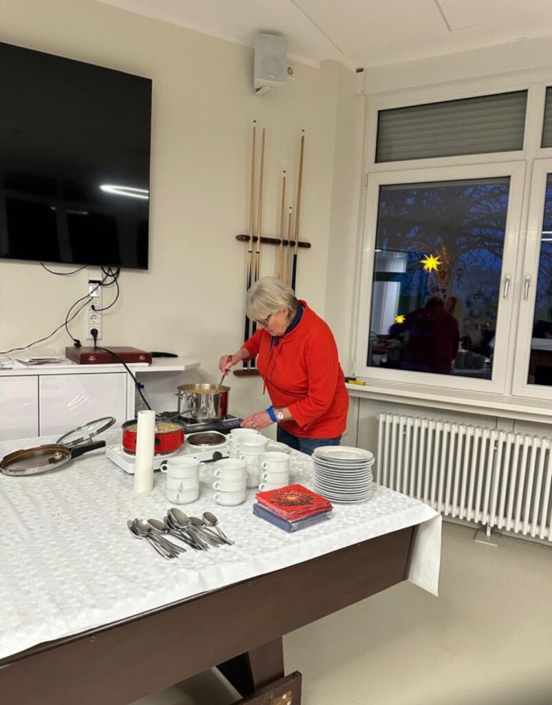 Nach der Bewegung an der frischen Waldluft wartete im Vereinsheim „Treffpunkt“ eine wohlverdiente Belohnung auf die Wanderinnen. Zum Jahresauftakt wurde gemeinsam mit einem Glas Sekt angestoßen. Kaffee, Kuchen und eine süße Stärkung sorgten anschließend für neue Energie, bevor eine leckere Suppe den gemütlichen Abschluss bildete.