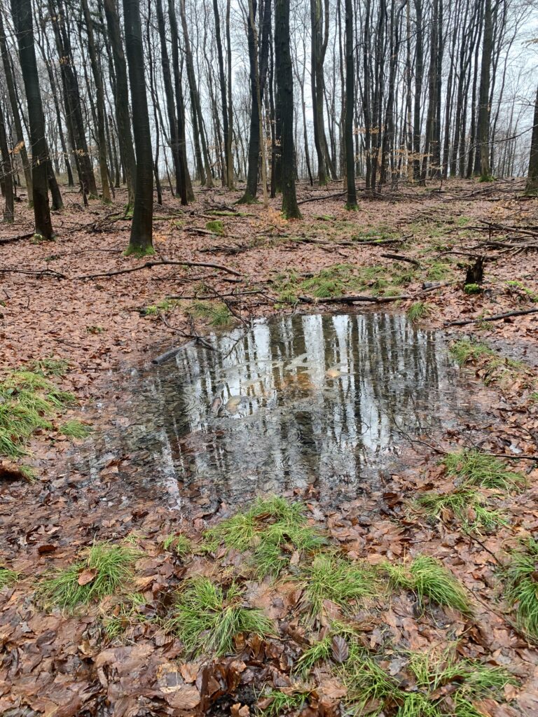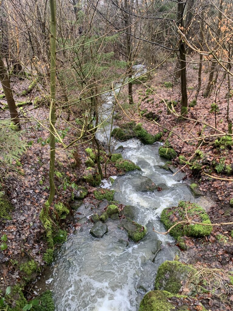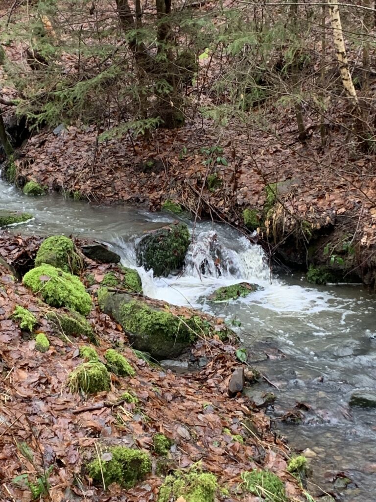 Unser Wanderführer Hans zeigte dabei keinerlei Gnade. Nicht nur, dass er uns zuverlässig durch Matsch und Morast im Leistruper Wald führte – ganz nebenbei wusste er auch noch Spannendes über Quellen, Bäche und sogar unterirdische Wasserblasen zu berichten. Bildung und Abenteuer also in perfekter Kombination.