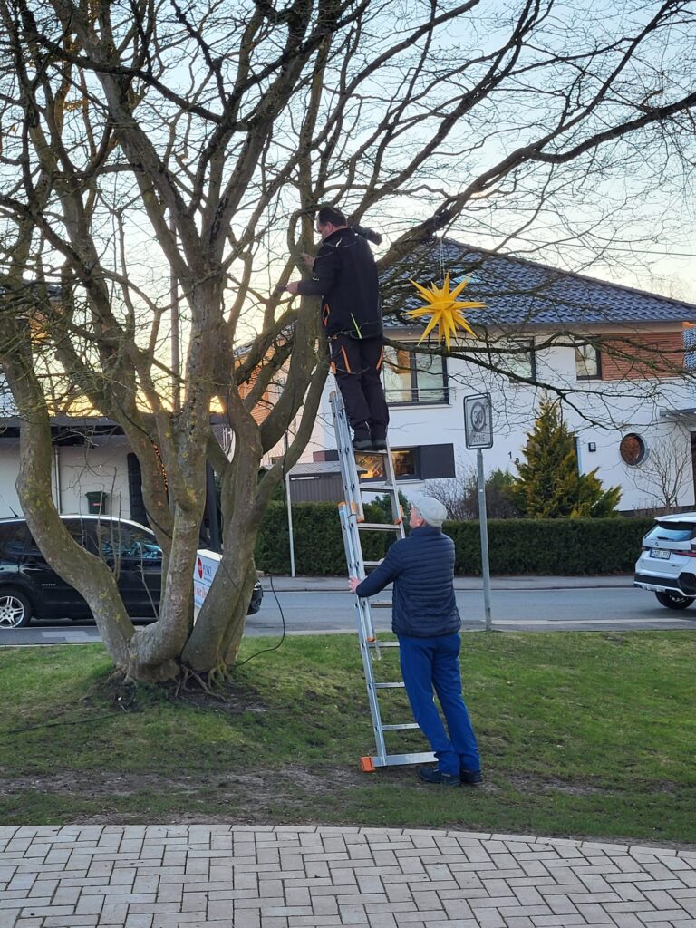 Doch wie so oft stand auch heute nicht die Arbeit im Mittelpunkt, sondern das Miteinander. Das Abnehmen und sorgfältige Verstauen der Sterne für das nächste Jahr war fast schon Nebensache. Viel wichtiger waren das gemeinsame Anpacken, die Gespräche und das Lachen – genau das, was unseren Verein ausmacht.