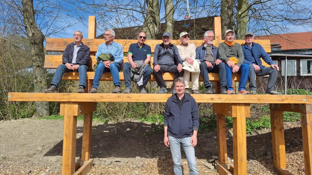 Weiter ging es Richtung Bauernkamp. Auf der „Riesenbank“ legten wir eine wohlverdiente Pause ein. Der Blick ins Land war einfach großartig – weit hinaus Richtung Bad Lippspringe und ins Paderborner Land.