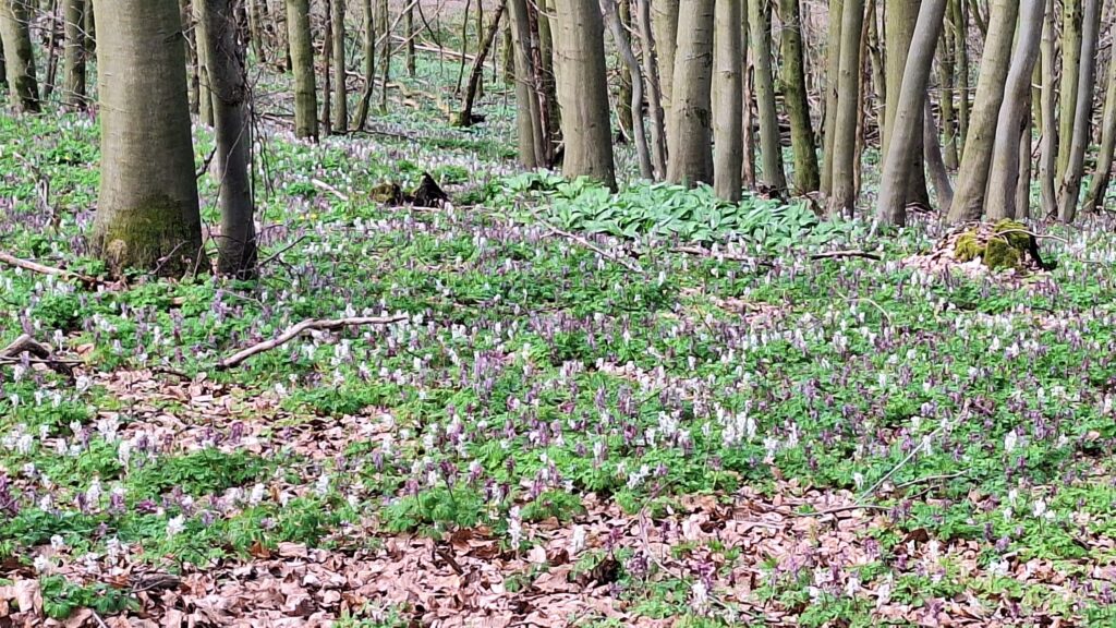 Der Lerchenspornweg machte seinem Namen alle Ehre: Überall blühte es. Frühjahrsblüher soweit das Auge reicht – ein toller Anblick, der uns auf dem Weg begleitet hat.